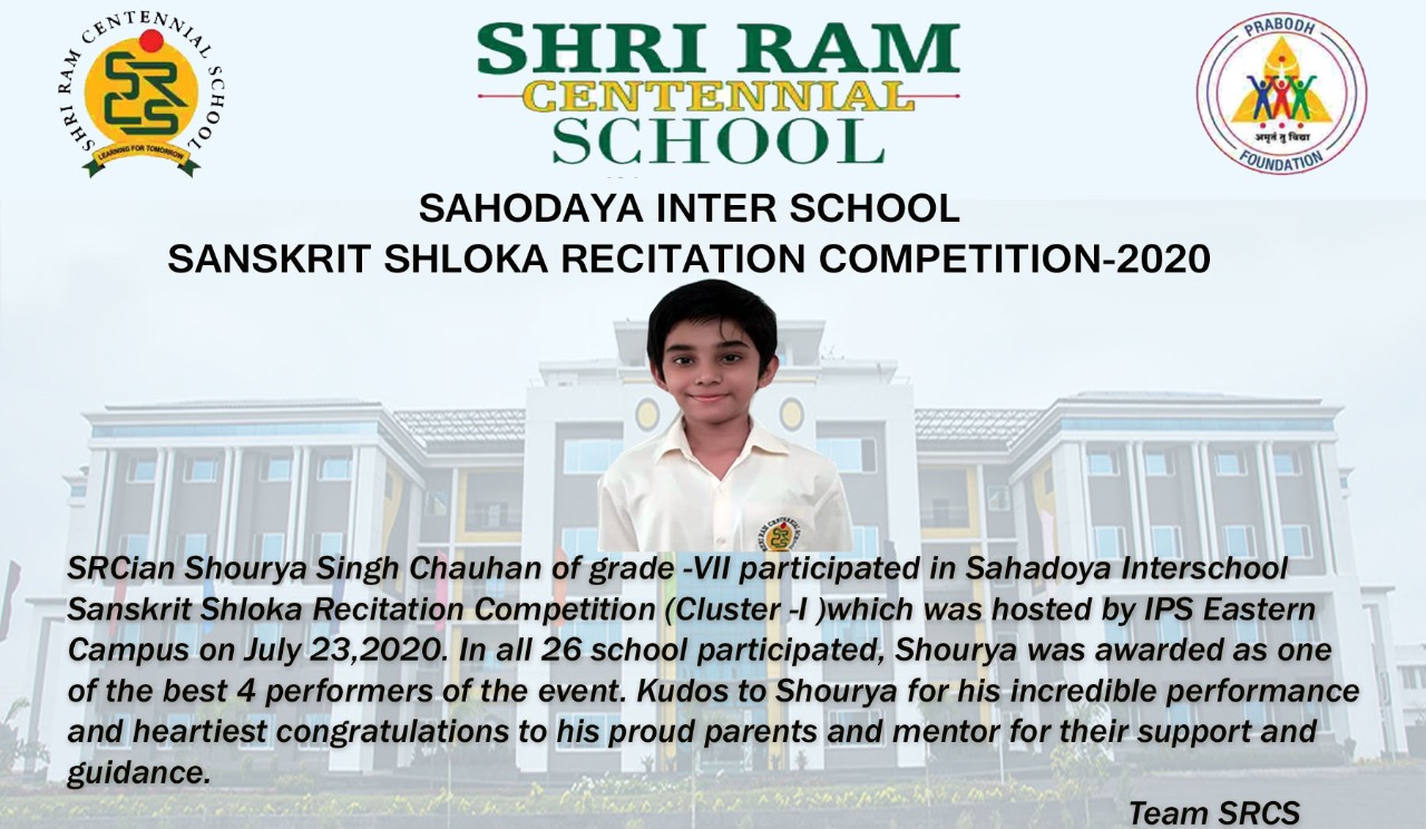 We proudly announce that Shourya Singh Chauhan of grade VII has participated in Sahodaya Inter Schoo...